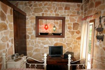 Facilities: Ιδιωτική πισίνα, πλήρως εντοιχισμένες ηλεκτρικές συσκευές και μικροσυσκευές κουζίνας, πλυντήριο ρούχων & πλυντήριο πιάτων (στο α’ διαμέρισμα), τηλεοράσεις lcd με δορυφορική λήψη, τζάκι (στο α’ διαμέρισμα), κλιματισμός σε όλα τα δωμάτια, επίπλωση εξωτερικού χώρου.